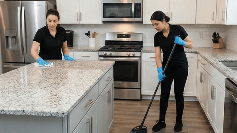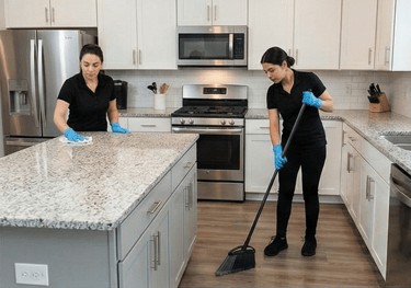During a regular cleaning service, our professional team focuses on the most frequently used areas of your home. We dust and wipe surfaces, vacuum and mop floors, clean and sanitize bathrooms, and clean kitchen countertops and sinks. Trash is removed, common areas are tidied, and high-touch points such as door handles and light switches are wiped down to help maintain a healthy home environment.